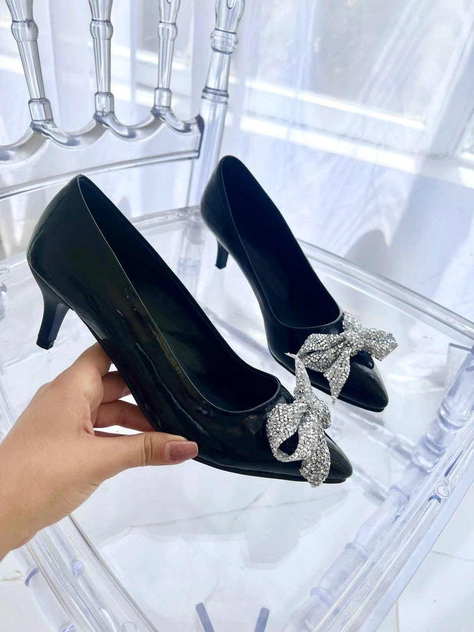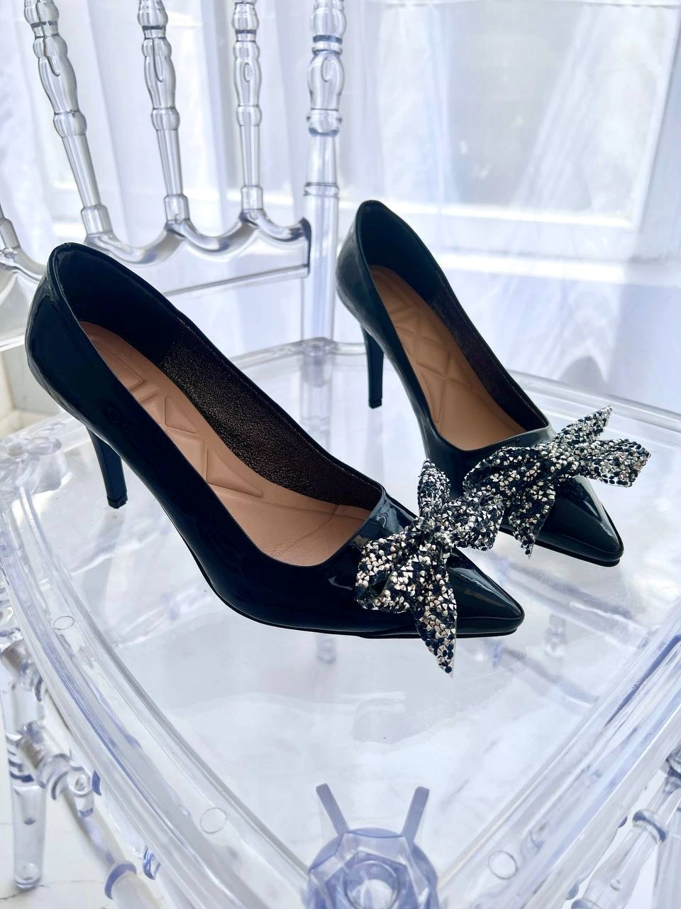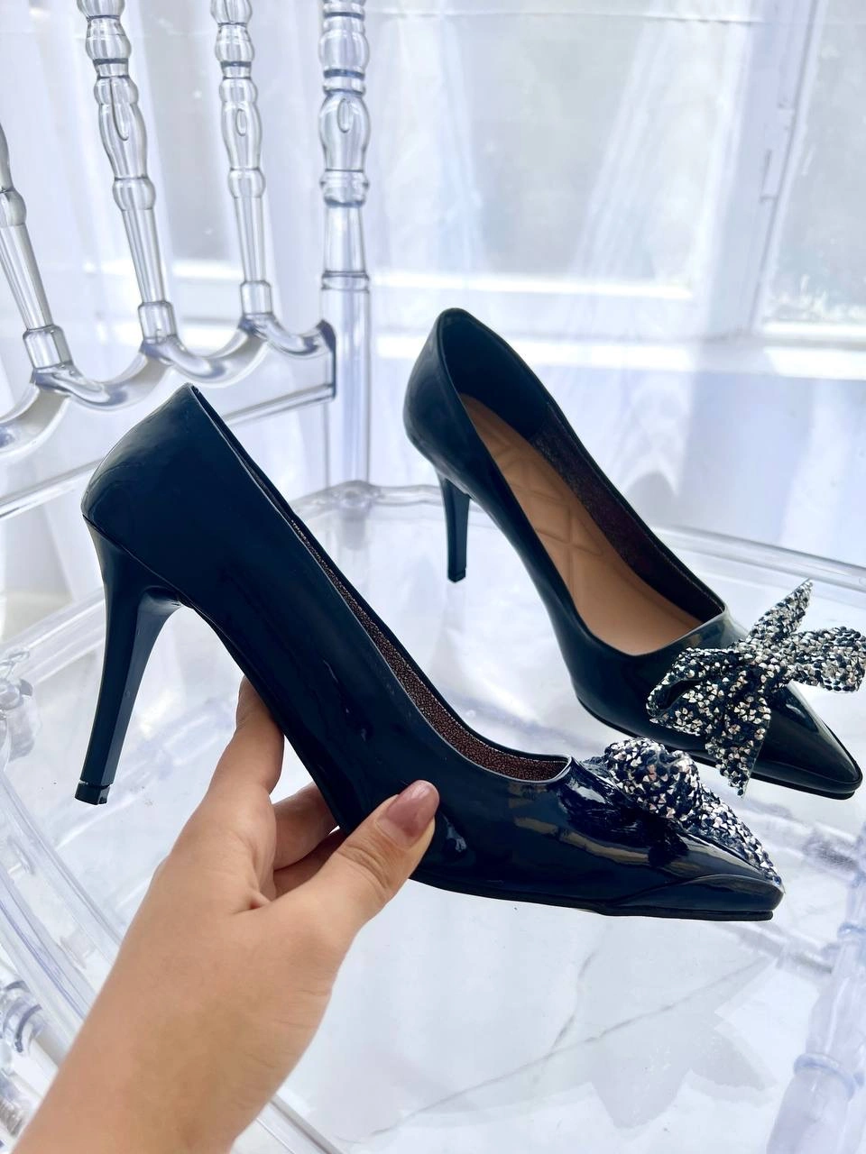 حتما نوع پاشنه و نوع نگین را انتخاب کنید. درصورتی که نگین انتخاب نشود، کفش ساده و بدون نگین ارسال خواهد شد. درصورتی که پاشنه انتخاب نشود، سفارش در وضعیت معلق قرار خواهد گرفت و تا تکمیل مشخصات، ارسال نخواهد شد. درصورتی که پنجه ی پهن دارید یک سایز بزرگتر انتخاب کنید.