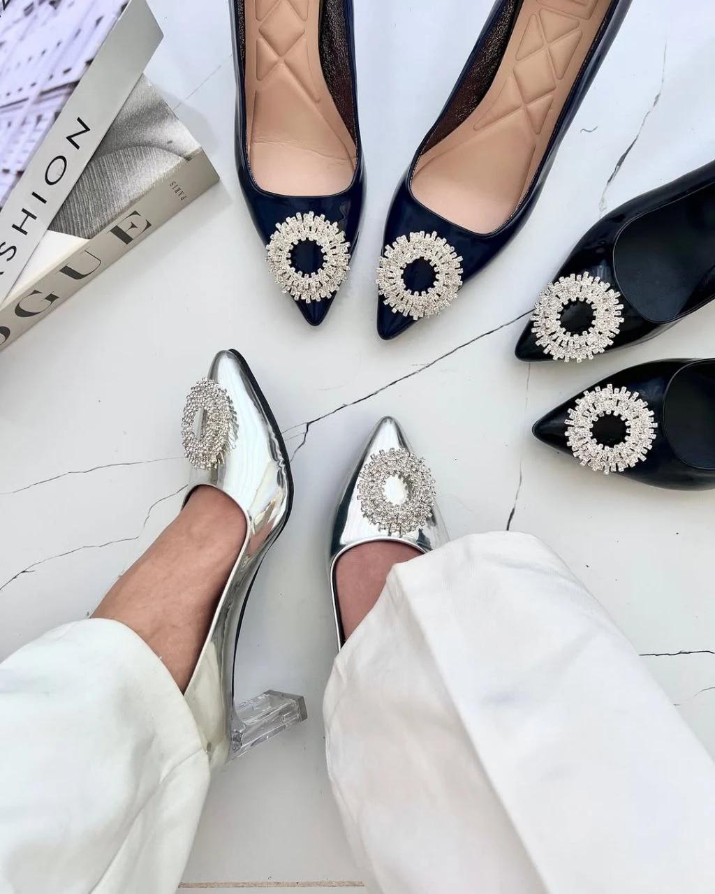 حتما نوع پاشنه و نوع نگین را انتخاب کنید. درصورتی که نگین انتخاب نشود، کفش ساده و بدون نگین ارسال خواهد شد . درصورتی که پاشنه انتخاب نشود ، سفارش در وضعیت معلق قرار خواهد گرفت و تا تکمیل مشخصات ، ارسال نخواهد شد . درصورتی که پنجه ی پهن دارید یک سایز بزرگتر انتخاب کنید .