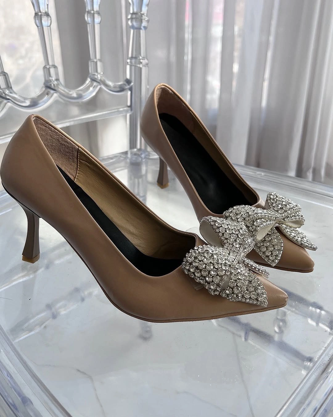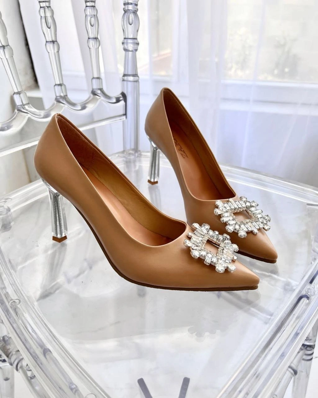 حتما نوع پاشنه و نوع نگین را انتخاب کنید، درصورتی که نگین انتخاب نشود، کفش ساده و بدون نگین ارسال خواهد شد. درصورتی که پاشنه انتخاب نشود، سفارش در وضعیت معلق قرار خواهد گرفت و تا تکمیل مشخصات، ارسال نخواهد شد. درصورتی که پنجهی پهن دارید یک سایز بزرگتر انتخاب کنید.