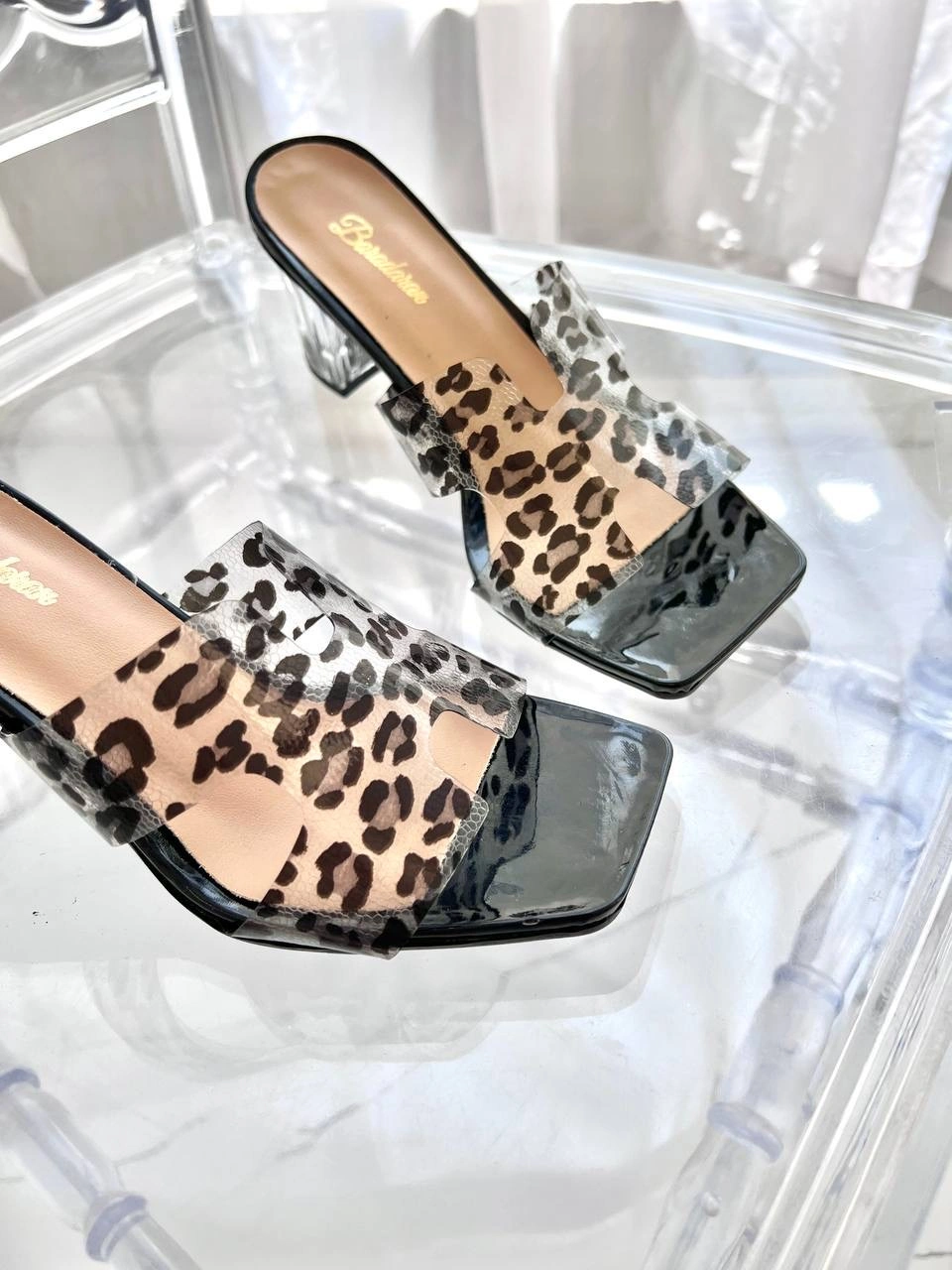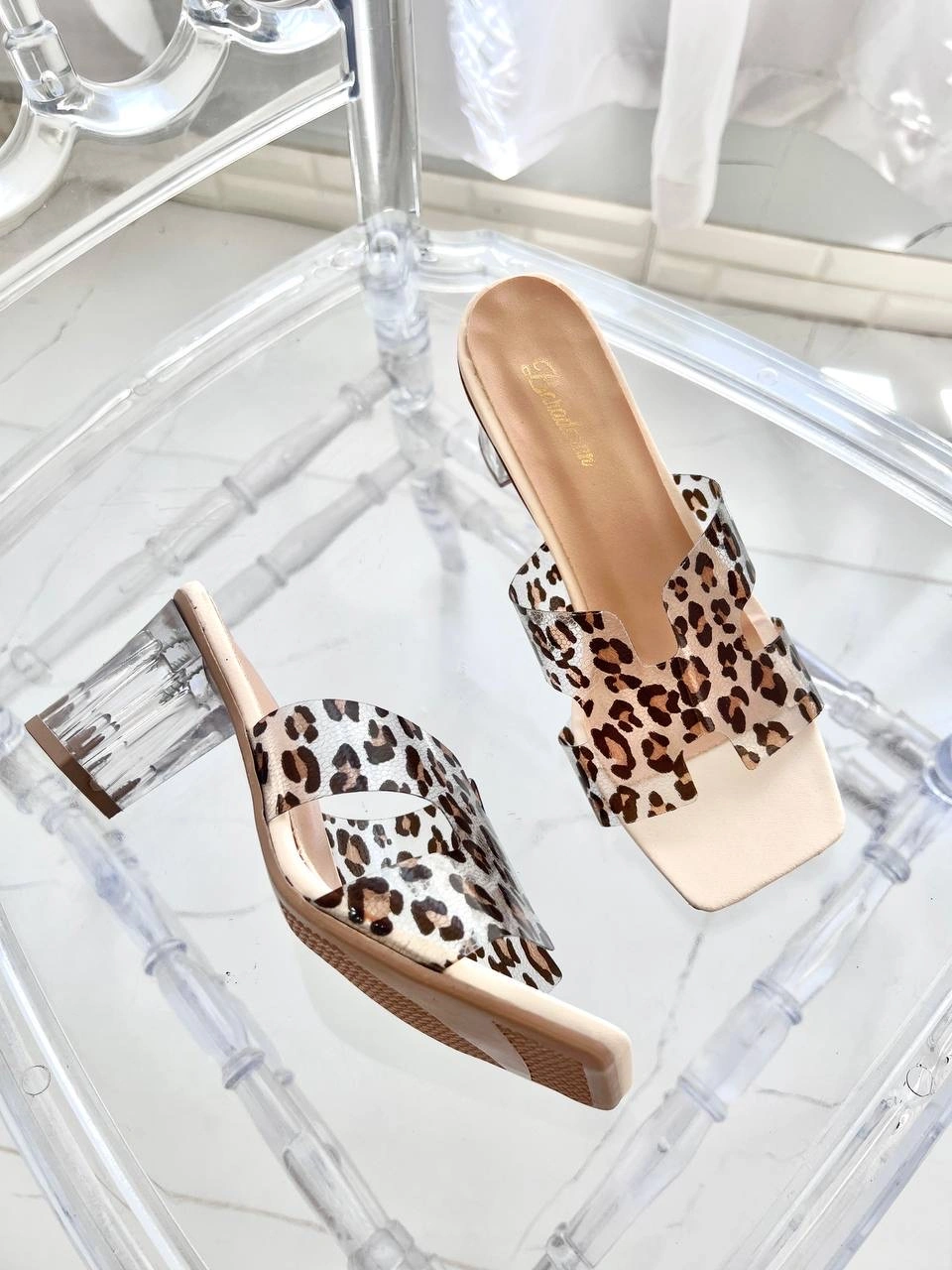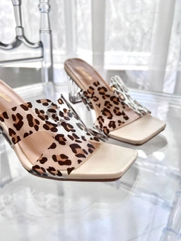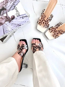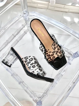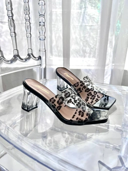 پاشنه ثابت 6 سانت شیشه ای طلق طرحدار پلنگی  قالب استاندارد