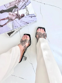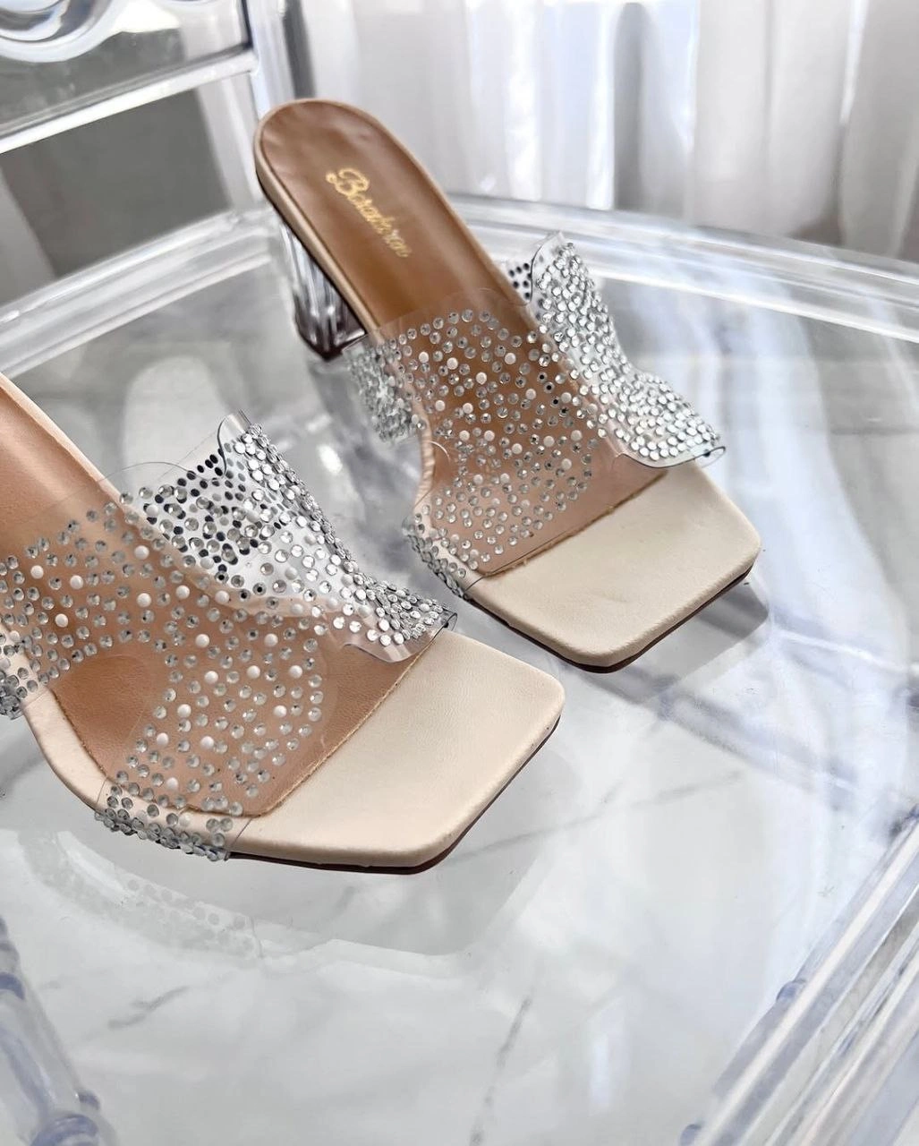 قالب استاندارد پاشنه شیشه ای 6 سانت طلق نگین دار بدون ریزش