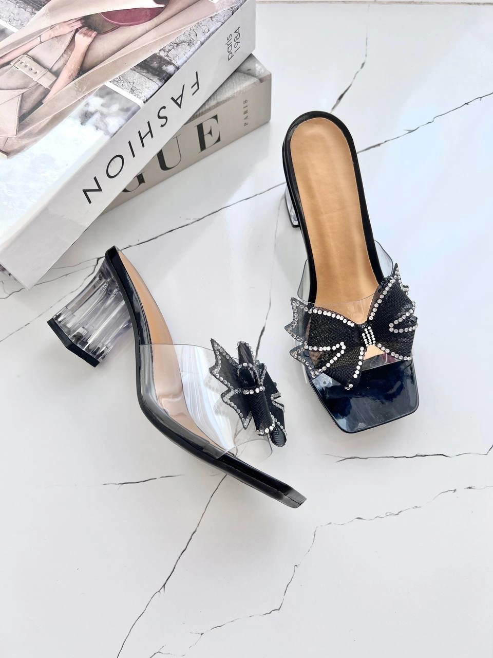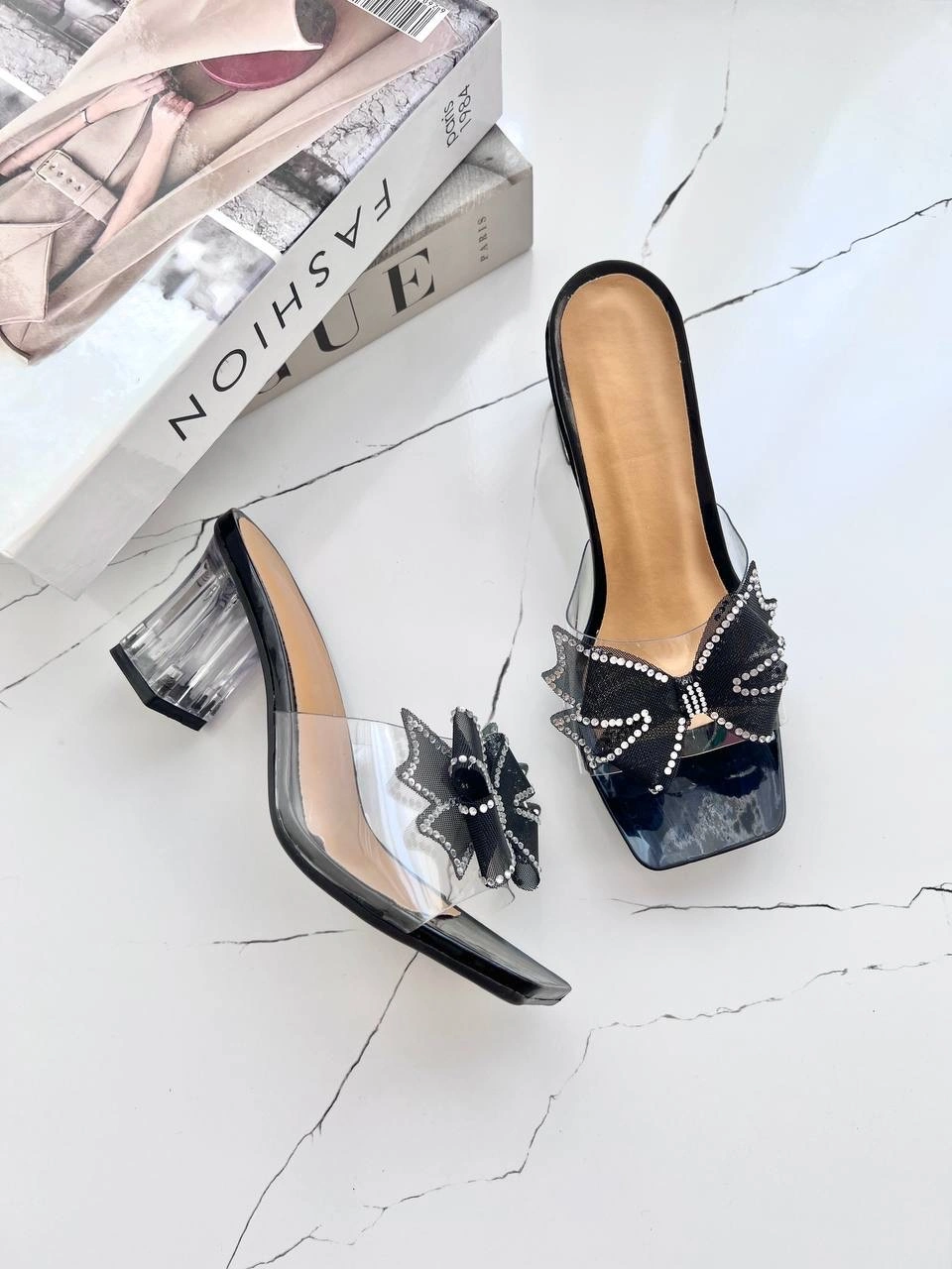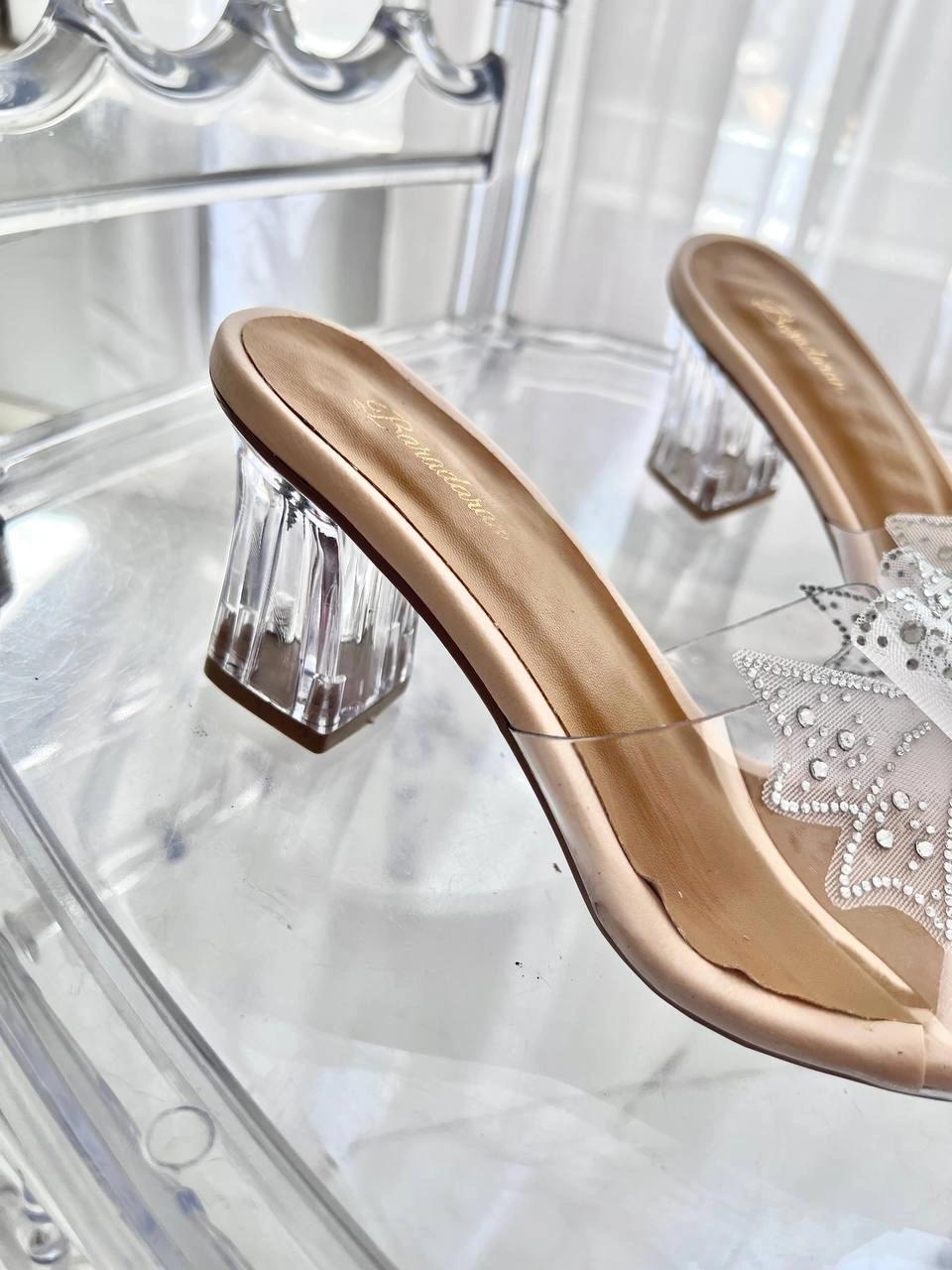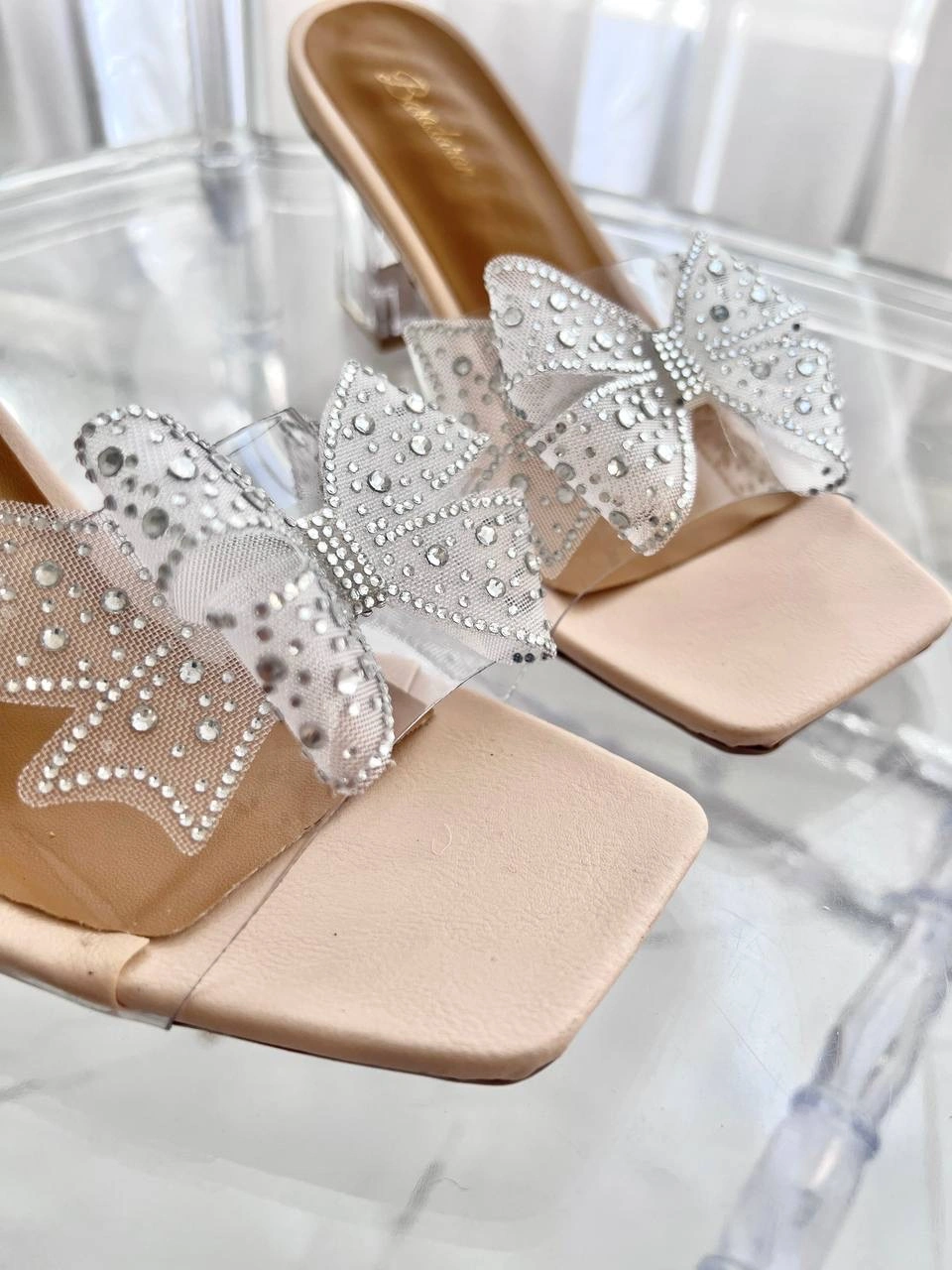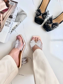 قالب استاندارد پاشنه شیشه ای 6 سانت پاپیون نگین دار