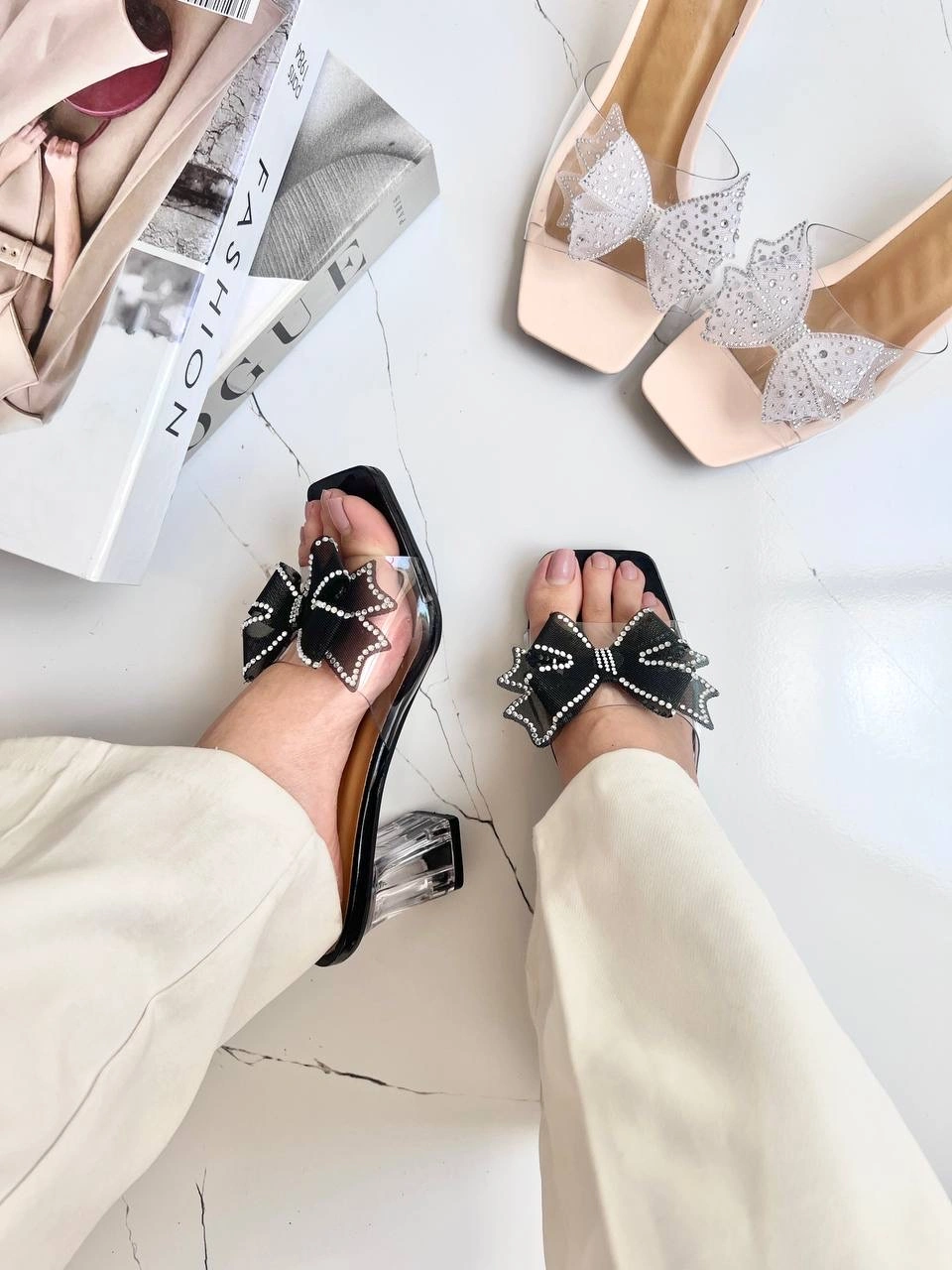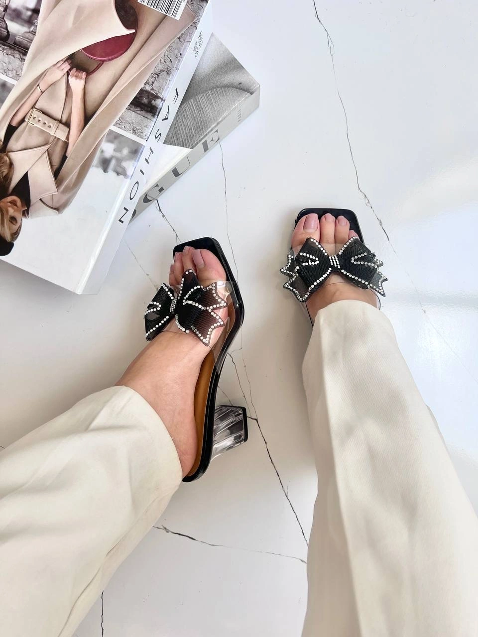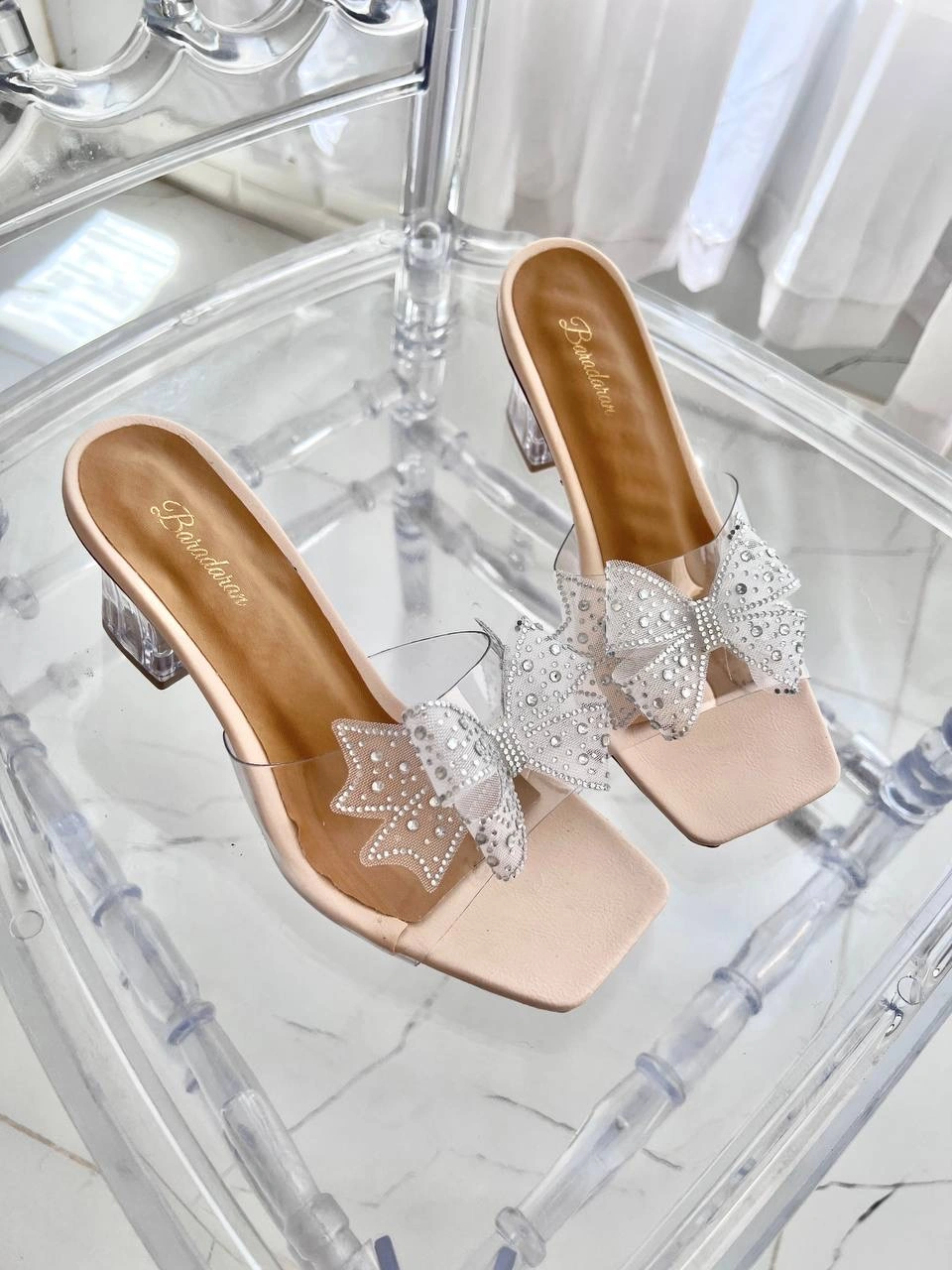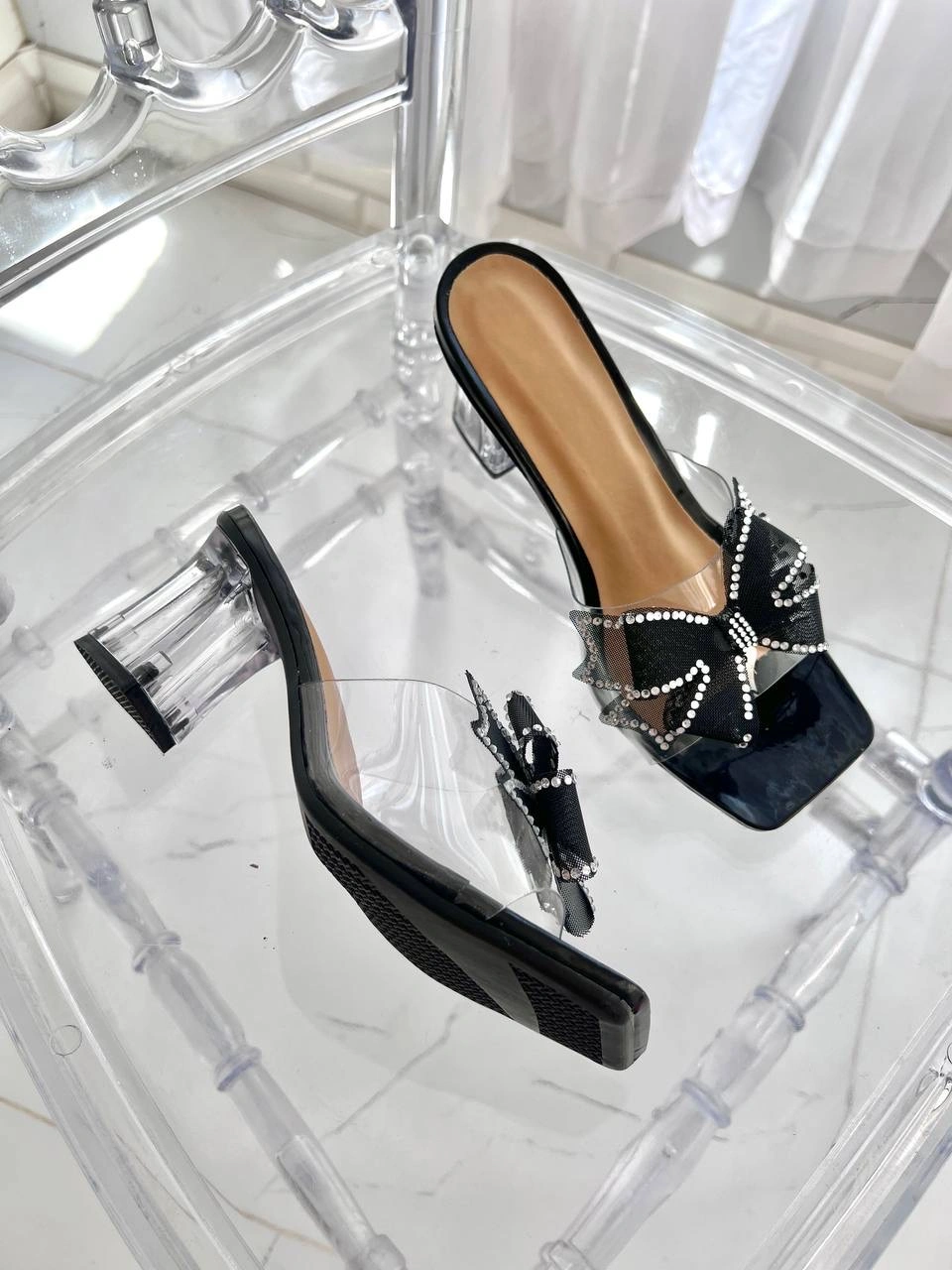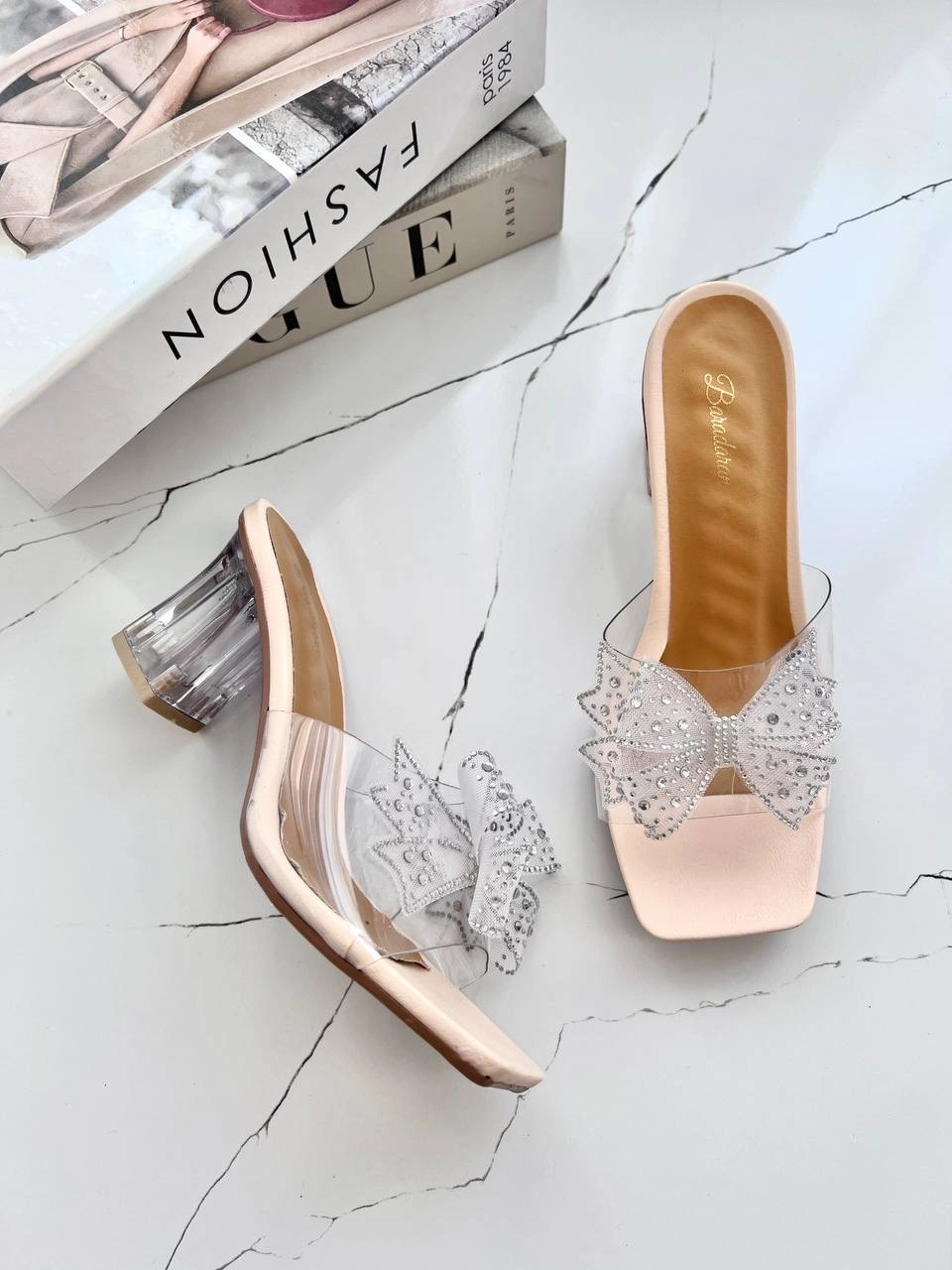 قالب استاندارد پاشنه شیشه ای 6 سانت پاپیون نگین دار