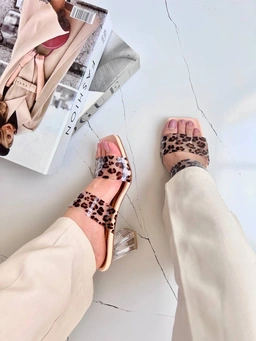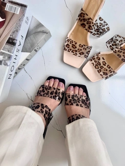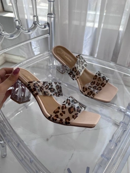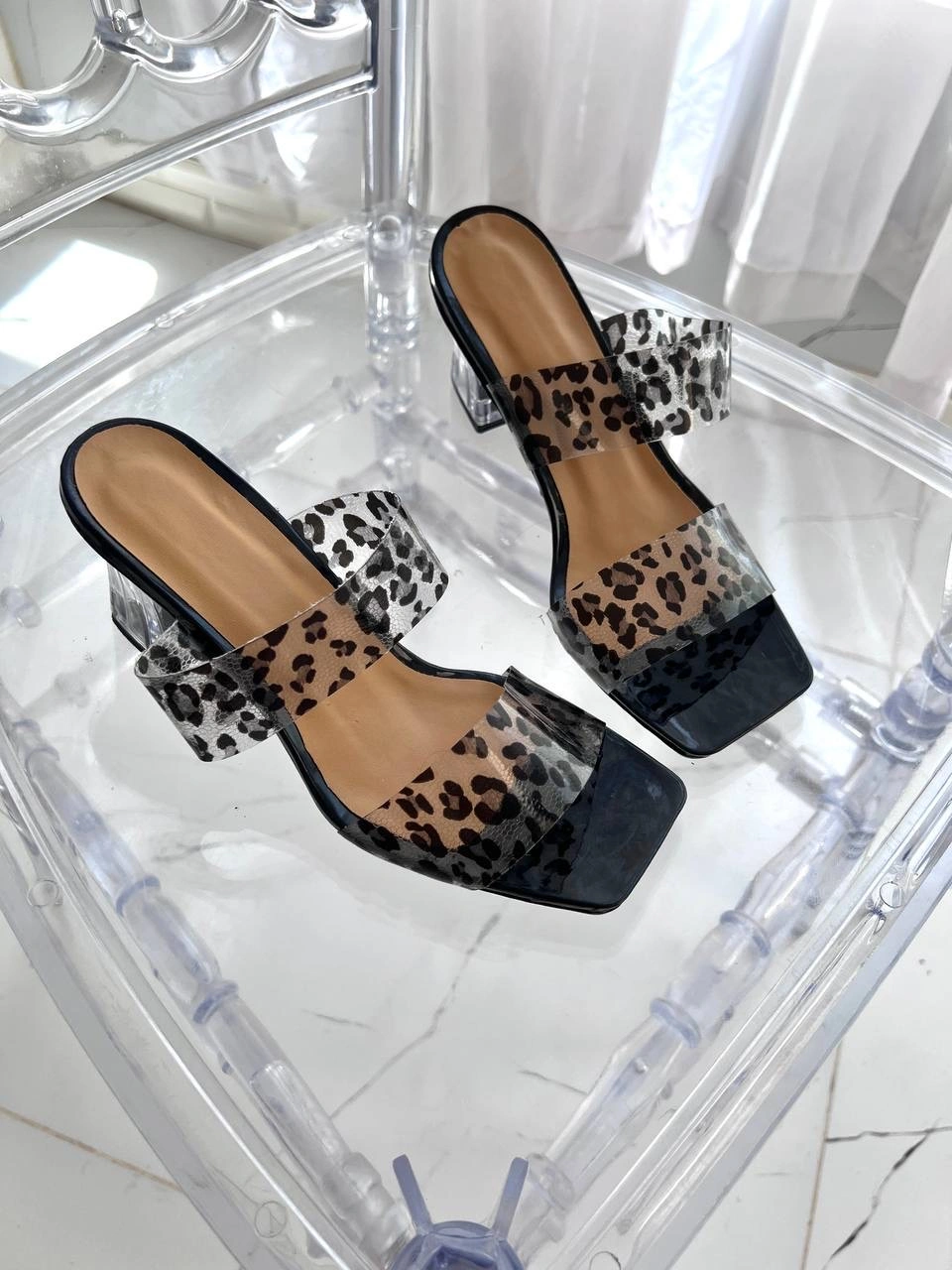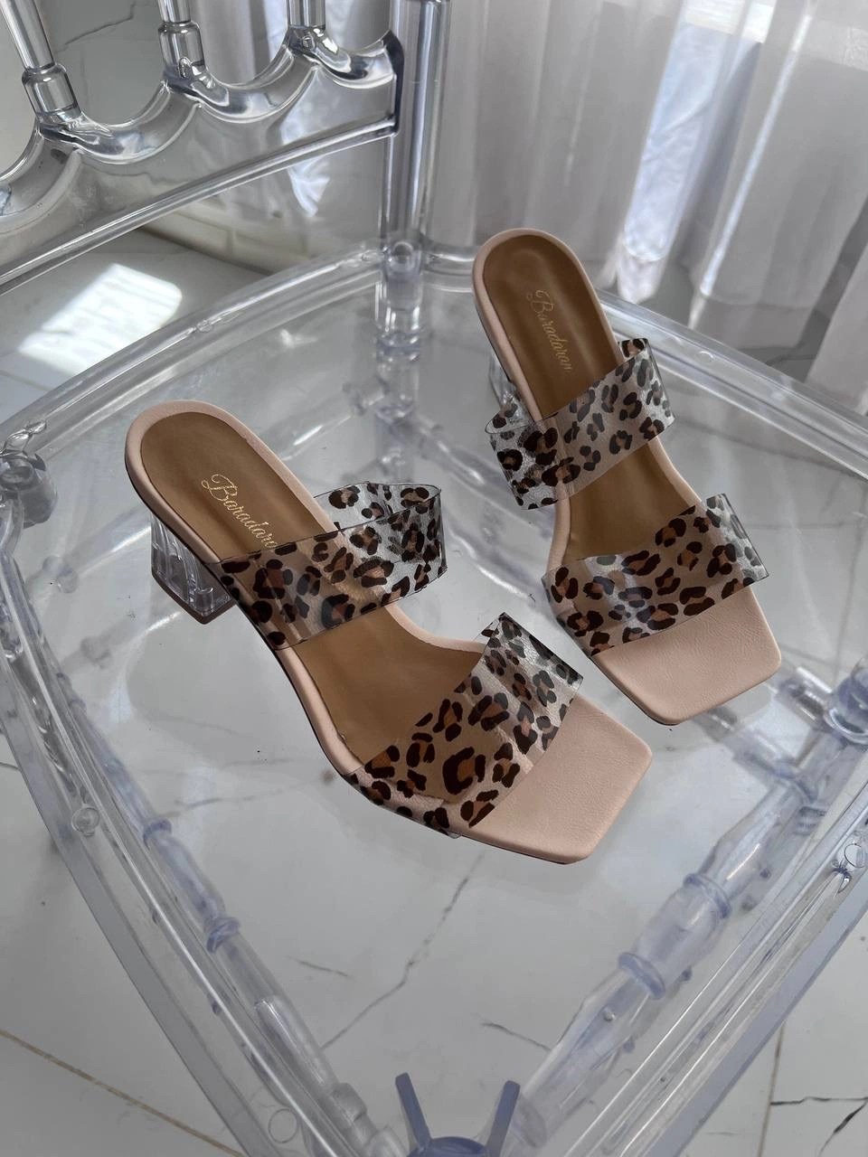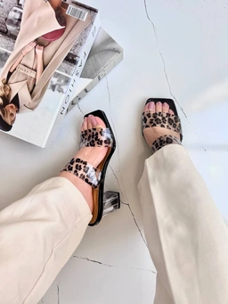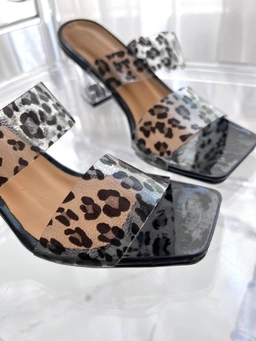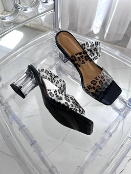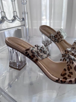 پاشنه ثابت 6 سانت شیشه ای طلق طرحدار پلنگی  قالب استاندارد