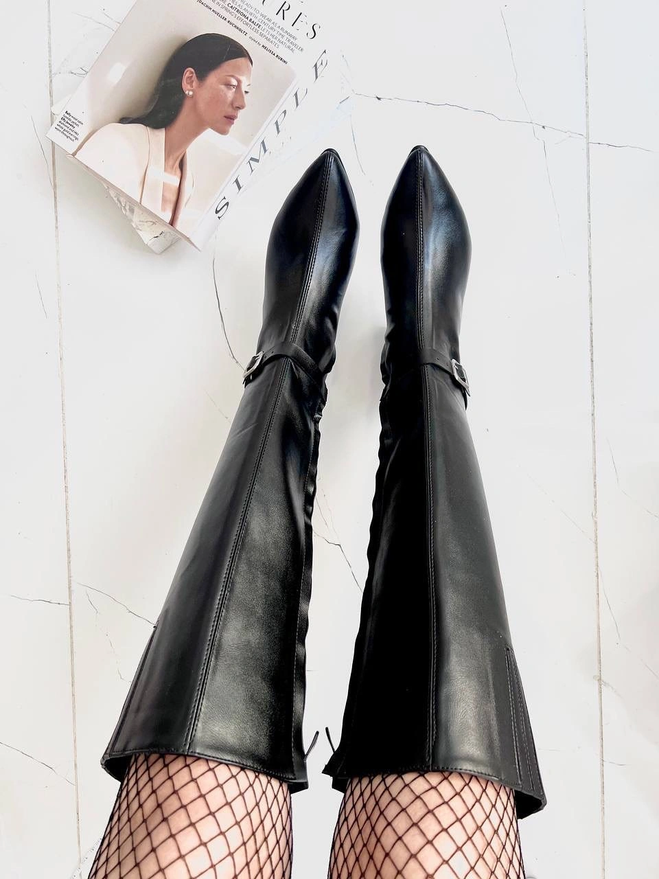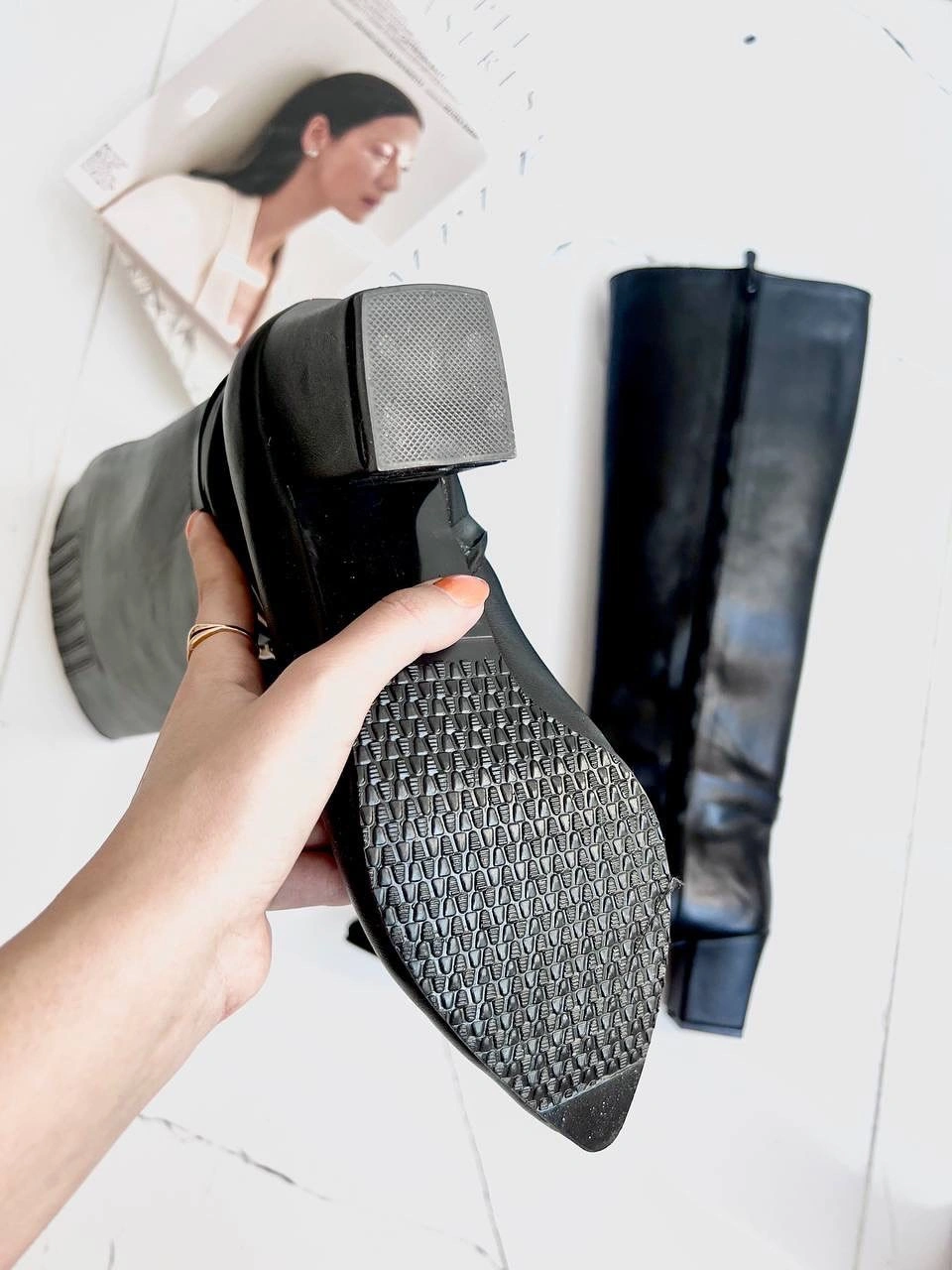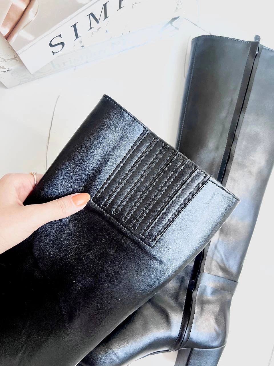 درصورتی که پنجه ی پهن دارید یک سایز بزرگتر سفارش دهید . طول ساق 42 سانت از بالای پاشنه